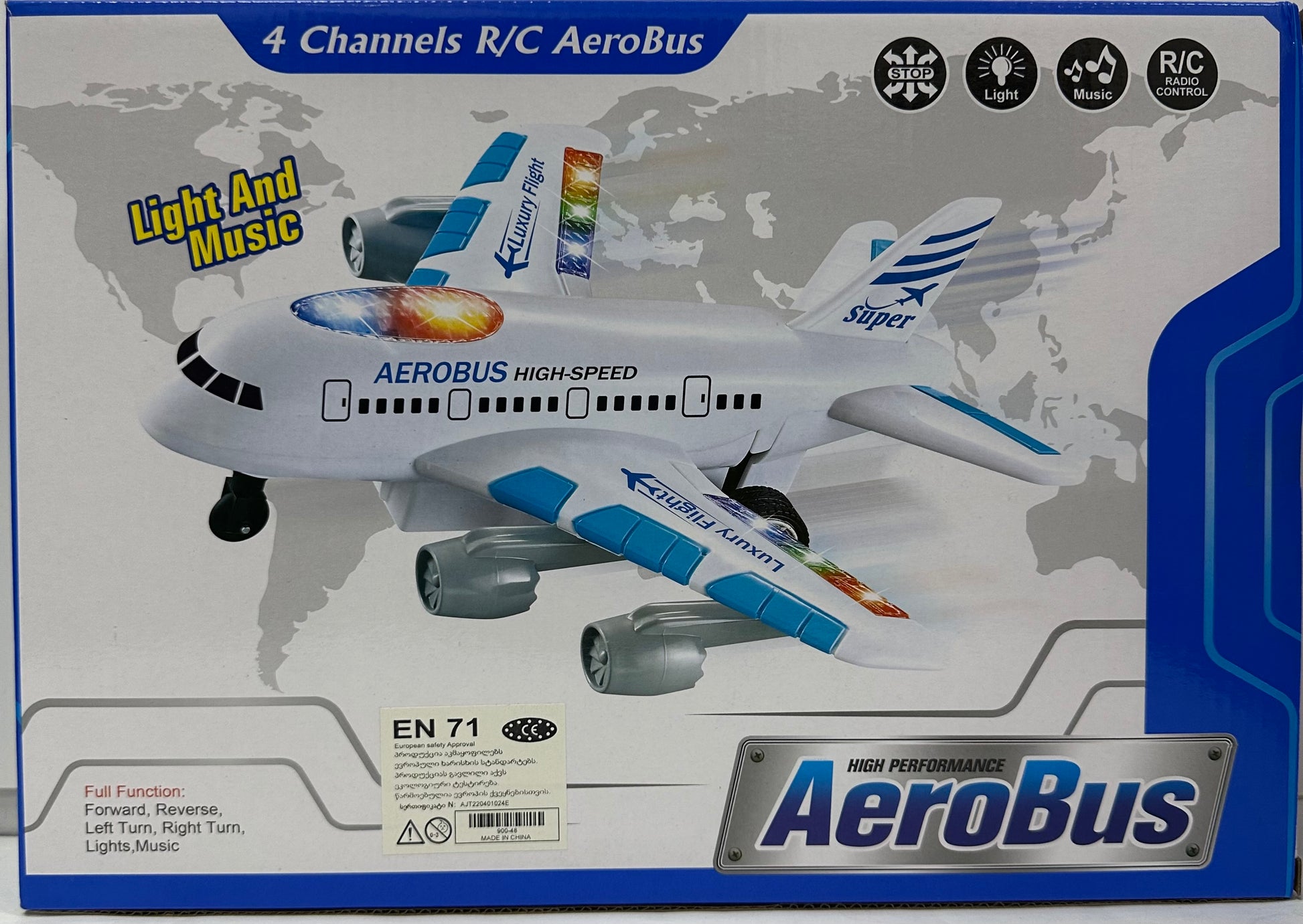 თვითმფრინავი პულტით მართვადი დადის საბურავებზე