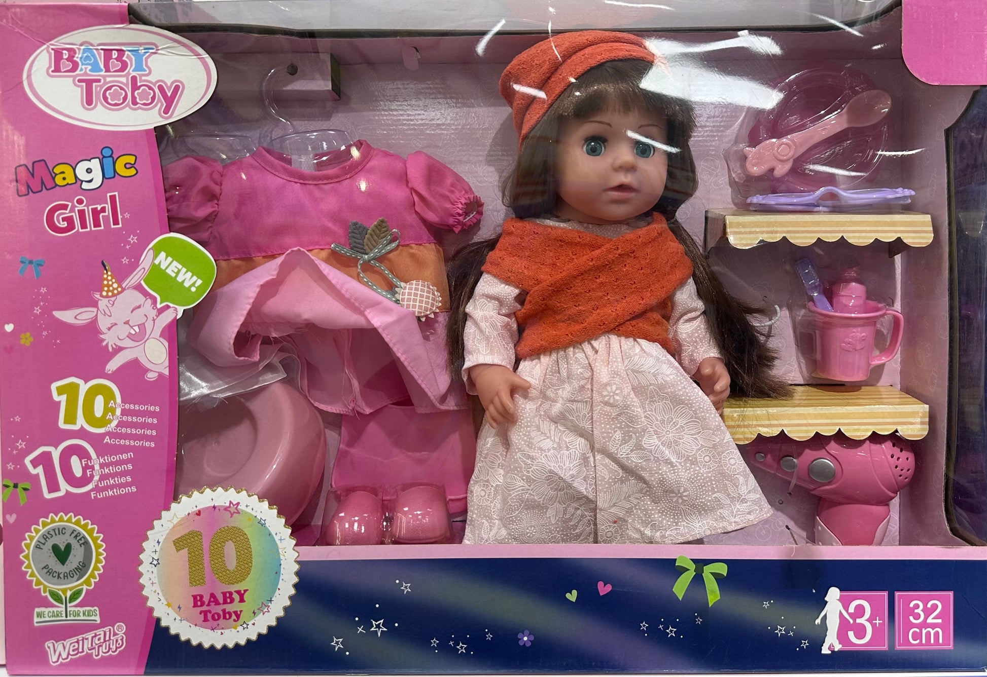 თოჯინა მოყვება ტანსაცმელი და სხვადასხვა აქსესუარები